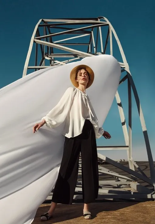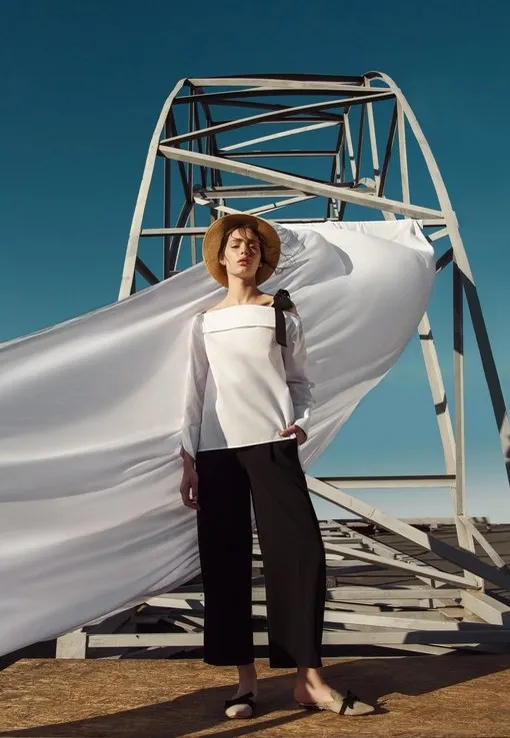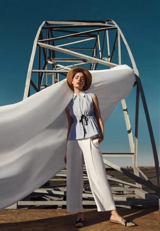 «В этой коллекции я демонстрирую тот детский взгляд на мир, который все еще нам присущ, — эмоциональный, беззаботный и свободный. Каждый образ — это радость, простота восприятия мира и волнующее впечатление каждого детства...» — рассказывает дизайнер. К примеру, голубое платье стало воплощением водной глади, белое — морской пены, а образ из нежно-розовых брюк и белого топа символизирует нежность и вдохновение.