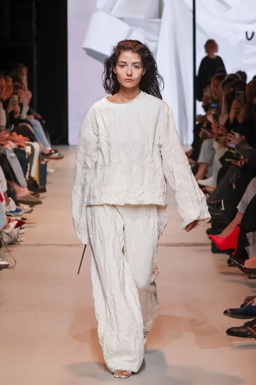 «Нам было интересно рассматривать одежду как трехмерную скульптуру, которую можно буквально создавать на манекене из тканей разных фактур, формируя объем», – рассказывает команда UNKE о недавнем показе своей свежей коллекции. И ее, мы тебе скажем, правда нужно видеть!