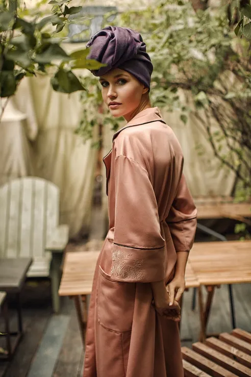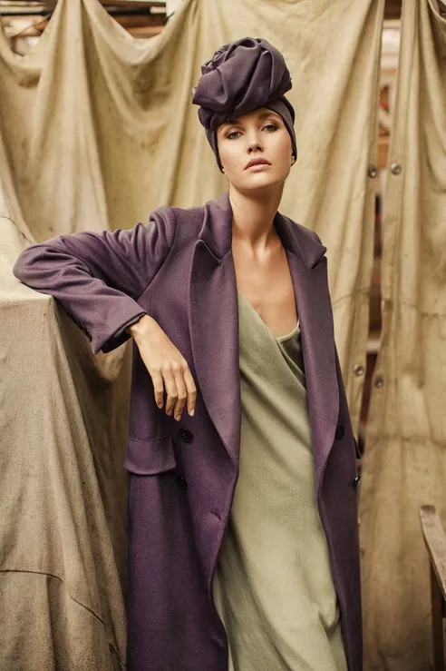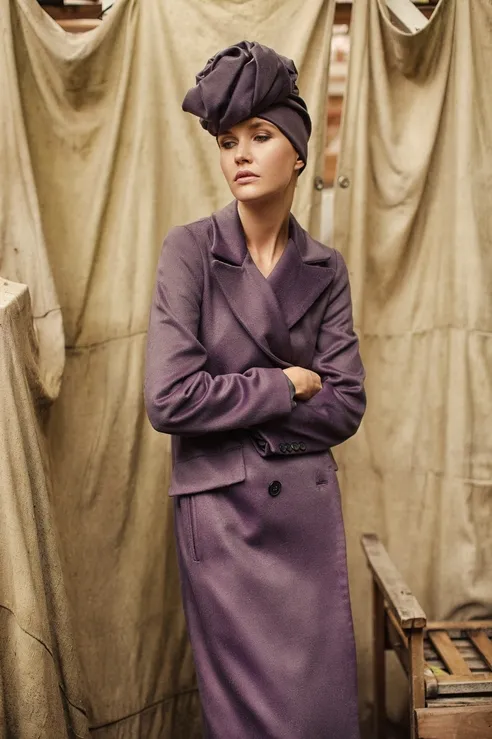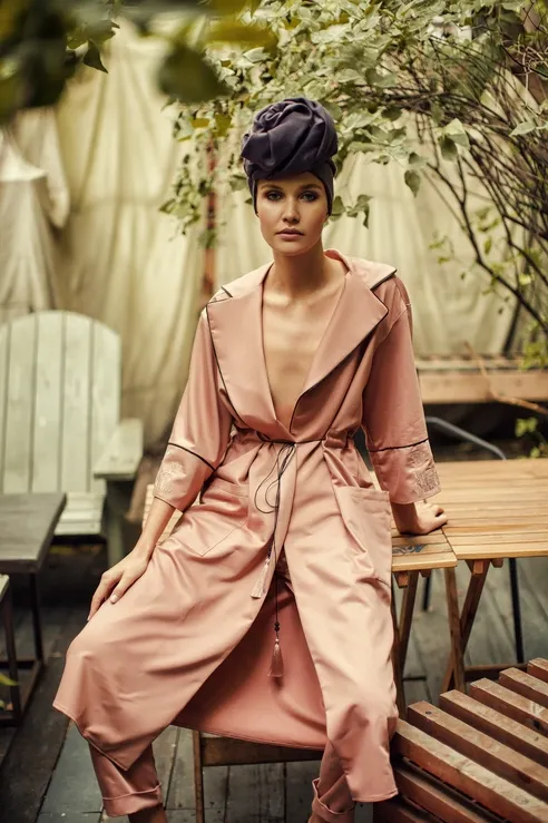 Основой капсулы стали двубортные пальто из смесовой ткани (шерсть + вискоза), выполненные в нейтральных базовых оттенках. В коллекции также представлены платья-комбинации и костюмы в бельевом стиле с авторской вышивкой.