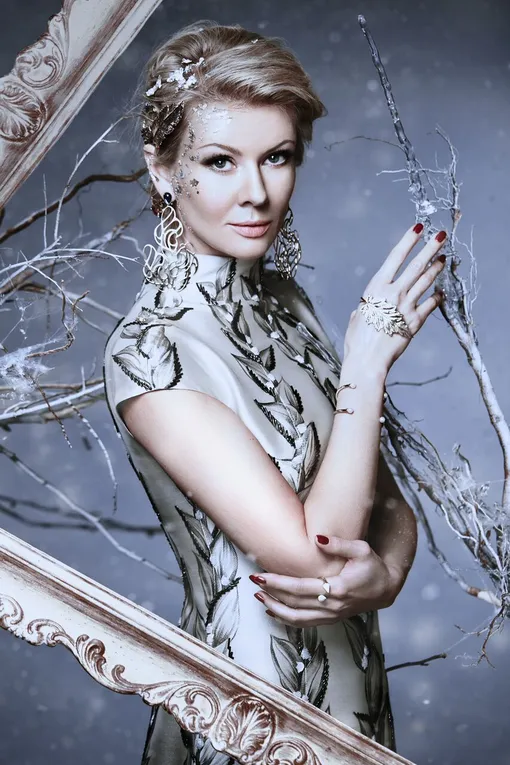 На Екатерине Мухиной: ленты для волос Cecile Boccara, серьги Isabelle Michel Bijoux, Колье в руках Eddie Borgо;