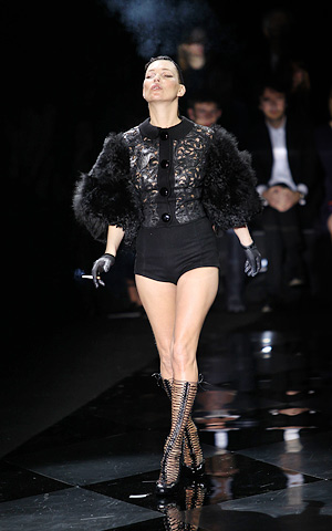 Вчера Кейт Мосс закрыла показ на Парижской неделе моды, выкурив сигарету.