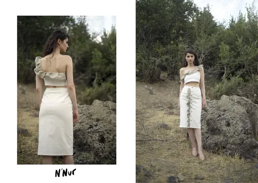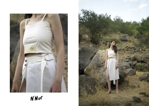 N'Nur — это молодой и смелый российский бренд дизайнера русско-армянского происхождения Ненси Аветисян, базирующийся в Москве. Новая августовская коллекция марки вдохновлена армянскими мотивами, летней свежестью, легкостью. В линейке оказалось много вещей без застежек — чтобы быстро прыгнуть и побежать по делам.