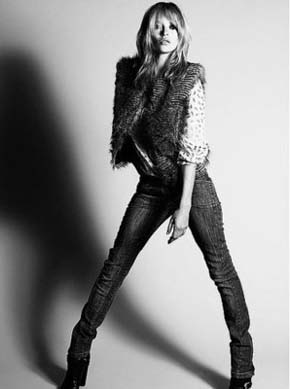 Красотка Кейт Мосс очередной раз снялась для рекламы Top Shop. Прежде чем мы начнем рассматривать фотографии очаровательной Кейт, давай двух словах посмотрим, что же на этот раз нам предлагает носить Top Shop? Главная фишка коллекции – расшитые блестками кожаные жакеты. Предполагается, что лучшим дополнением к ним станут полосатые брюки, также представленные в коллекции. Трикотажные кофточки в стиле романтического винтажа придутся по вкусу и скромницам, и любительницам строгий юбок с завышенной талией. Наши фавориты коллекции: стандартная кофточка на пуговицах с принтом в виде сердца – отличный вариант для первого свидания, курточка с бахромой и туника с психоделическими полосками. В общем, как обычно, приятные модели по вменяемым ценам. Фотосессия Кейт выполнена во всегда актуальном ч/б, с одной стороны получилось очень стильно, с другой – не дает возможности оценить цветовые решения моделей. Впрочем, этот пробел легко восполнит поход в магазин.