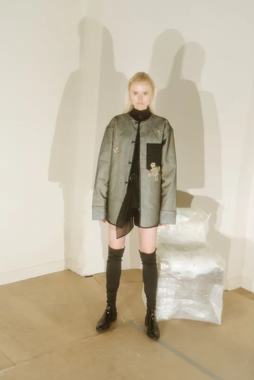 Легкие шелковые блузы и топы рекомендуется комбинировать с базовым, близким к телу трикотажем. Лаковые брюки и шорты — с грубыми ботинками. В новой коллекции, как никогда, раскрывается тема слоев и объема, новым прочтением которых выступают перекрытия тканей — иллюзия многоплановости и сокрытости. Лукбук коллекции снят в ренессансной технике «сфумато», которая позволяет передать окутывающий моделей воздух. Именно этот прием переносит зрителя в атмосферу, задуманную дизайнером, обстановку, полную запахов и едва уловимых аллюзий.