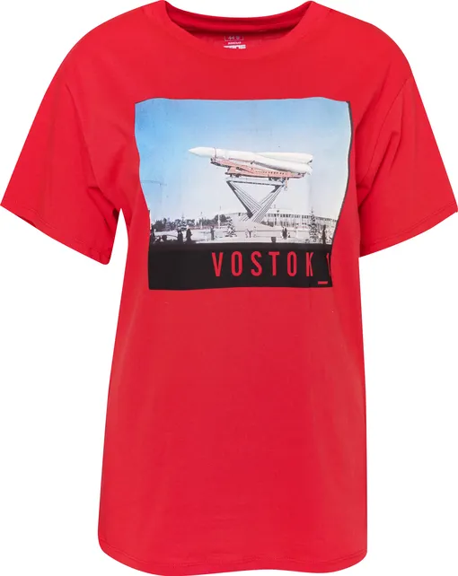 Must-have коллекции — футболки с изображением космического корабля «Восток-1» и портретом Юрия Гагарина.