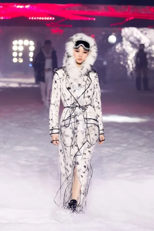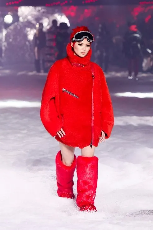 Коллекция получилась не менее космической, чем шоу. Металлизированные комбинезоны, объемные «куртки астронавтов», кожаные байкерские жакеты с шипами, виниловые макинтоши, брюки из латекса, костюмы из светоотражающих тканей, деним в красную полоску и лыжные ботинки с эко-мехом — все образы пропитаны эстетикой «Бегущего по лезвию».