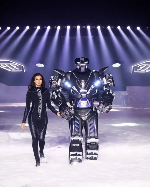 Шоу открыла Ирина Шейк, вышедшая на подиум под руку с роботом. Площадка была оформлена в виде космического корабля.