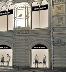 Модельер Джорджио Армани открыл свой первый бутик линии Emporio Armani в Москве. В московском ГУМе открылся трехэтажный фирменный бутик итальянской марки.