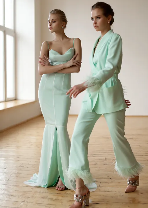 Цветовая гамма коллекции — мягкие и свежие оттенки лимона, мяты, глубокий изумрудный, а также нежно-розовые пудровые, подчеркивающие чувственность и сексуальность.