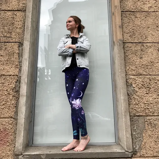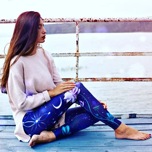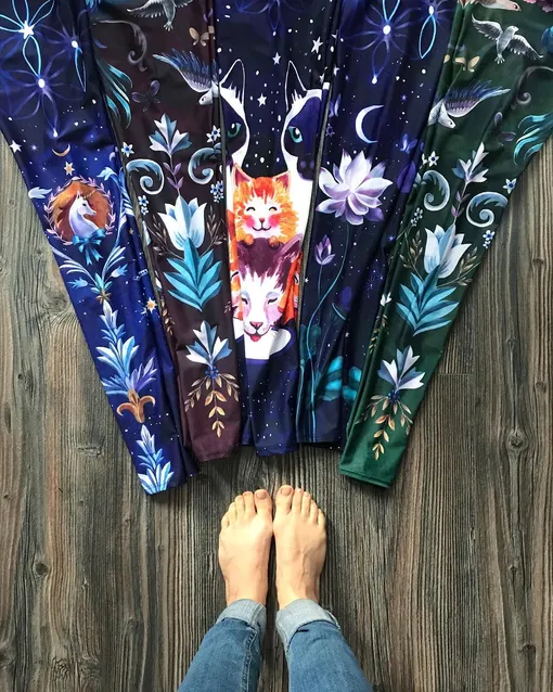 «Дышащая» синтетическая ткань и удобная широкая резинка позволяют телу чувствовать себя комфортно во время интенсивных занятий бегом и фитнесом. А яркие принты с лотосами, котиками, единорогами и птицами прокачивают чакры и способствуют открытию третьего глаза на занятиях йогой.