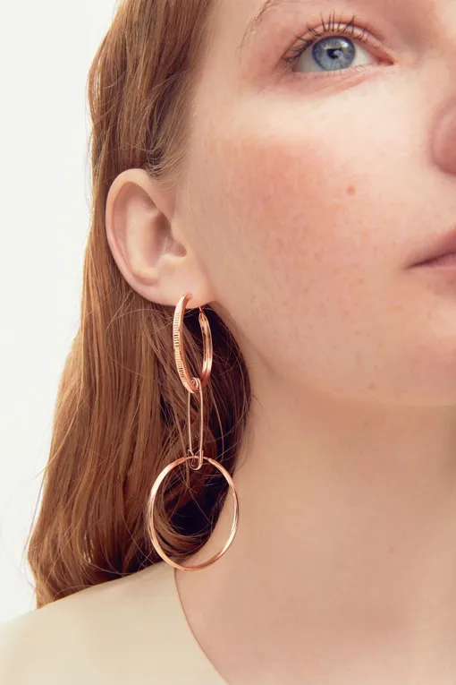 Самая часто встречающаяся модель серег на показах и на модницах street style по-прежнему серьги-кольца. Они могут быть разного диаметра и ширины, в разном цвете металла. Эту модель я настойчиво рекомендую приобретать в золоте или в серебре – они никогда не выходят из моды. Серьги-кольца идут абсолютно всем, главное найти подходящие тебе по пропорциям. Это настоящая палочка выручалочка, ведь они сочетаются практически с любым стилем в одежде и с другими любыми украшениями, уместны в любой жизненной ситуации. Они могут быть ровными по ширине или утолщаться в центру и сужаться к концам.