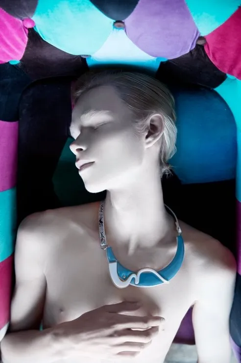 Основой коллекции стали крупные колье, броши и серьги, выполненные в узнаваемом стиле и по запатентованной технологии, позволяющей совмещать плексиглас, экокожу, ювелирную глазурь и оригинальные австрийские кристаллы Swarovski.