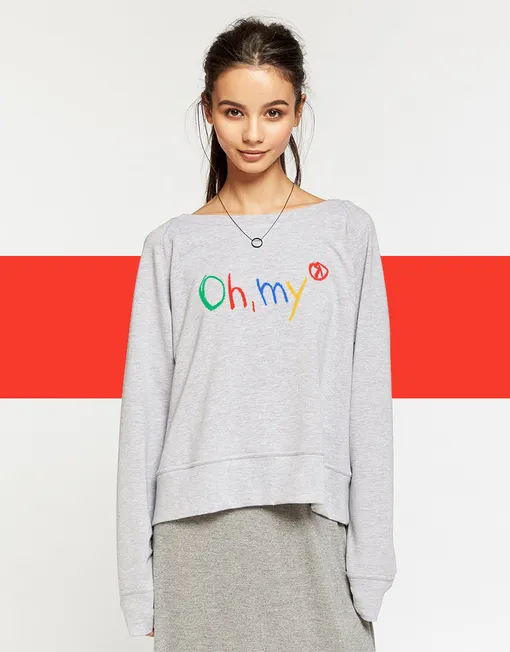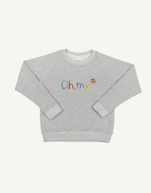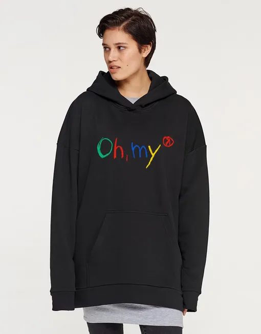 Футболки, свитшоты и худи украшены цветным логотипом Oh, my. Фон может быть белым, серым и черным. Размеры: на 1,5-2, 3-4, 5-7 и 8-10 лет. Чтобы почти с рождения и до третьего класса, а там уже и в папиной можно. Состав - 100% хлопок, как и всегда.