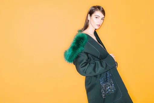 В основу коллекции легли романтичные платья из тонкой шерсти, костюмы из крепа с яркими деталями и объемные пальто. Отличительная особенность Abeille — обилие ручной работы: обработка швов, создание басок из перьев, декор платьев и пальто, а также авторская вышивка.