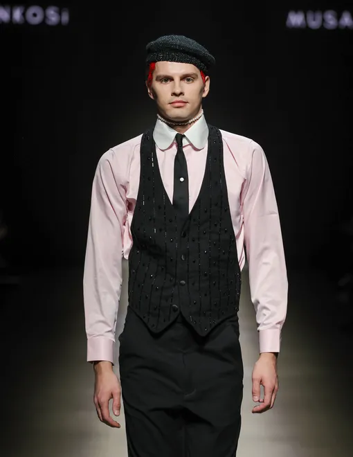 Для своей коллекции дизайнер и основатель южноафриканского бренда Musawenkosi черпал вдохновение из яркого культурного наследия Африки, где традиции встречаются с инновациями. Жилеты и рубашки, инкрустированные стразами, пиджаки с контрастными вставками на воротнике, приталенные жакеты, подчеркивающие мужскую фигуру, а также минималистичные цепи, декорирующие одежду.