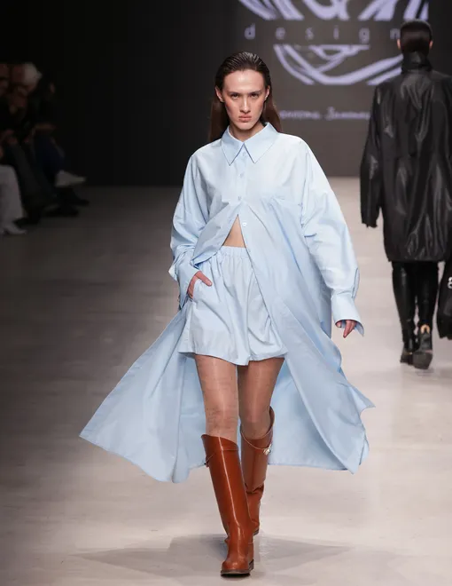 Максимально женственную и элегантную коллекцию продемонстрировал премиальный московский бренд Ammonit, философия которого отражается в рифме безупречного качества и роскоши. При этом, можно сказать, что девиз бренда — «красота в простоте». Это проявляется в прямых и приталенных силуэтах, природных оттенках, как песочный, черный янтарь, жемчужный, древесный, периодически перекликающихся с насыщенным алым.