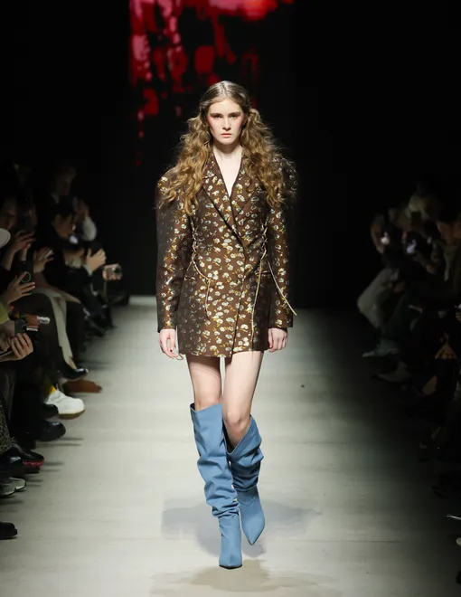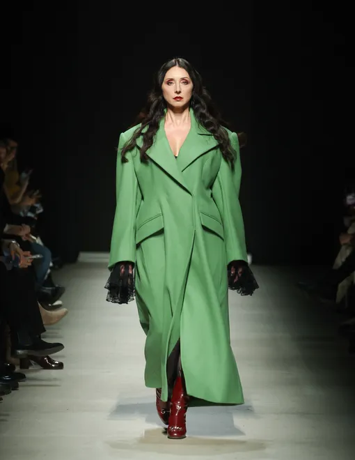 Главным узором коллекции стал, конечно же, леопард: он «раскрасил» и театральные перчатки, и верхнюю одежду, и накладные воротнички. Кстати, о воротничках — такой аксессуар с анималистичным рисунком сочетался с пальто в идентичном исполнении. Только леопардовые пятна верхней одежды были крупными, а на воротнике — мелкими. Вот еще один стереотип, который разрушился на глазах у всех зрителей. А среди гостей первых рядов показа бренда Rogov: певица Нюша, Эвелина Хромченко, стилисты Миша и Китти, Слава Копейкин, Ольга Карпуть, певица Ханна, модный инфлюенсер Катя Голден и многие другие.