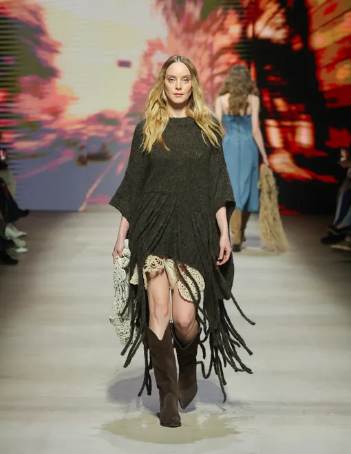 Миссия армянского бренда Loom Weaving – возрождение традиционных ремесел страны. Концепция представленной коллекции выстроена на техниках плетения и вязания: уютные кардиганы крупной вязки, кейпы из шерсти, украшенные ручной вышивкой, обилие изделий с бахромой как в длине макси и миди, так и мини. При этом теплые материалы соединяются с подчеркнуто легкими и струящимися, например, шифоном. Объемные сумки в качестве акцентов притягивают внимание, как и платья с открытой спиной – нельзя не согласиться, что такой прием выглядит женственно и притягательно.