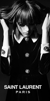 Автор снимков Эди Слиман (Hedi Slimane) нашел в лице русской модели правильную тональность. Хрупкая девушка с фигурой подростка эффектно представляет вещи из осенне-зимней коллекции бренда. Черно-белый цвет фотографий удачно подчеркивает контраст одежды в стиле глэм-рок с крупными деталями, металлическими заклепками и мужскими пиджаками и женственными мини-платьями. Объемные украшения и акцентированно-яркий макияж глаз завершают образ.