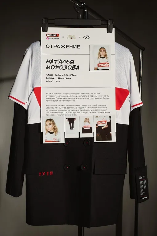 Например, на карманах кастомного пиджака «Спартака» римскими цифрами вышит год основания, а на рукаве красуется патч с фамилиями тренерского штаба и игроков команды — дань уважения всем, кто приложил свои силы к яркой истории. «Чертаново» — районная команда с говорящим девизом «Бейся за район». Чтобы передать бунтарский дух, за основу кастомизации взято бейсбольное джерси. А на нем красутется нашивка со строчками LOVV66 «10М ОТ ДОМА» — отсылка к сенсационной победе «Чертаново» над «Зенитом» в прошлом году.