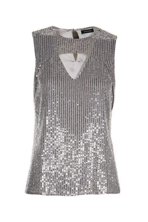 Образы с пайетками — явные фавориты сезона! Несколько интересных вариантов мы нашли у Guess. Платье — 19 390 рублей, топ Marciano — 13 290 рублей.