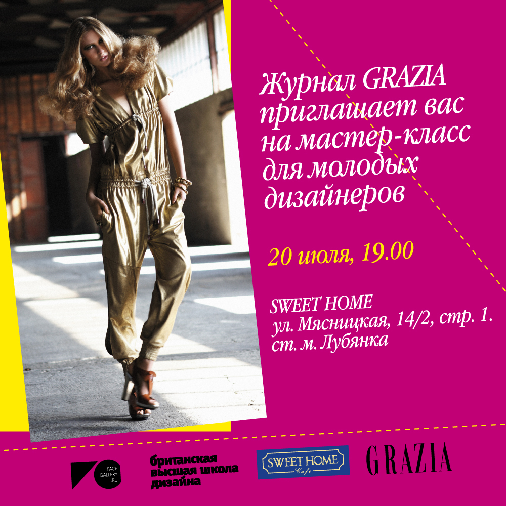 20 июля в 19.00 журнал GRAZIA приглашает всех, кто делает первые шаги в мире моды и мечтает попробовать свои силы в фэшн-индустрии, на мастер-класс в рамках ежегодного Конкурса молодых дизайнеров в SWEET HOME.