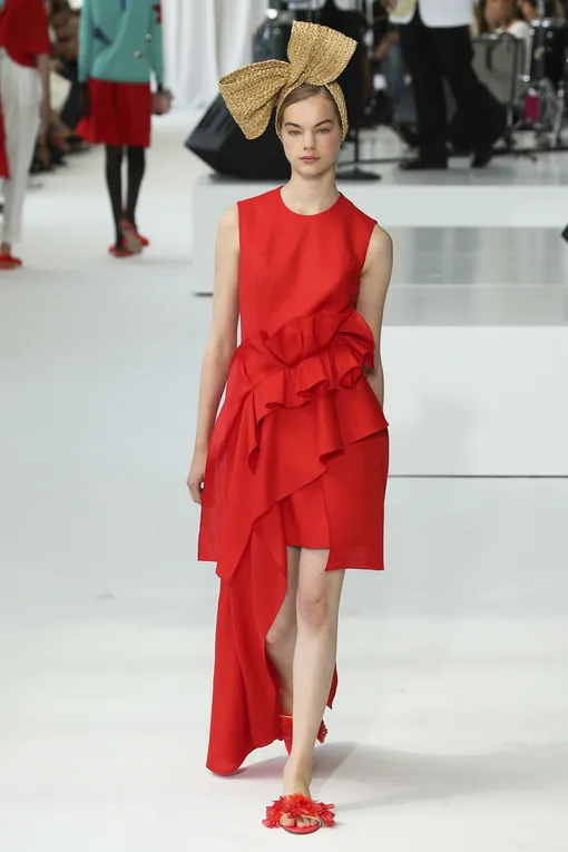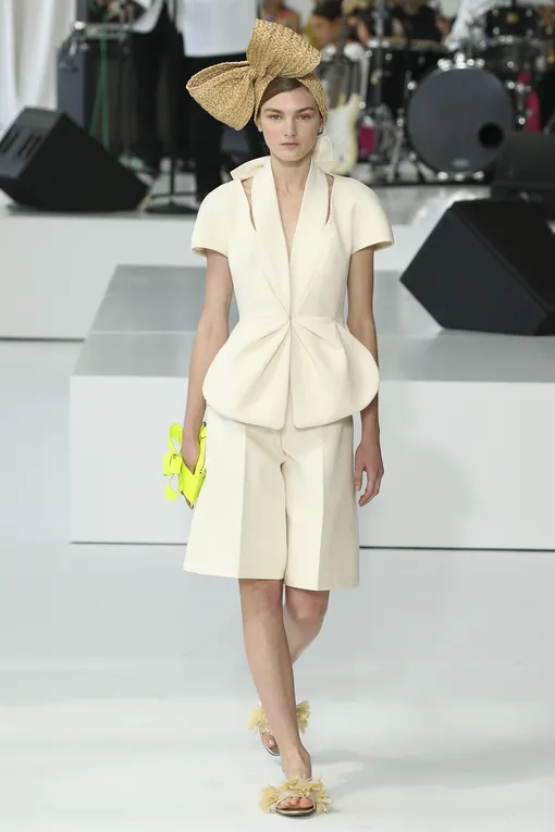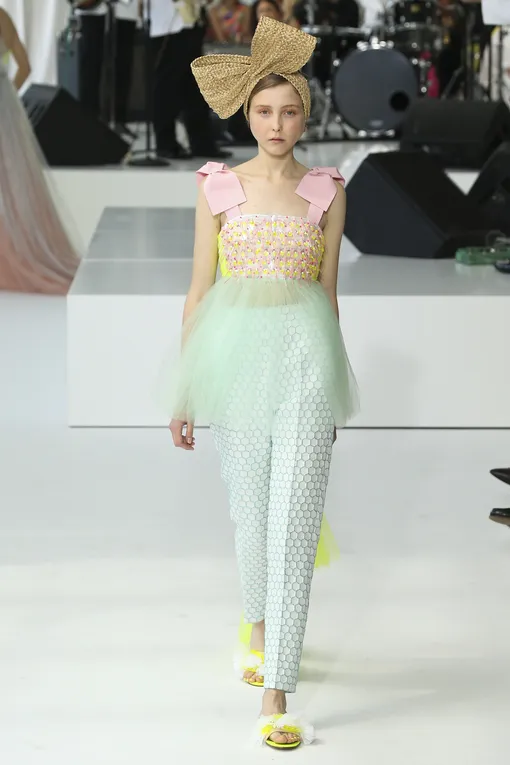 Ну и, конечно, самой броской деталью коллекции стали гипертрофированные банты на головах моделей, отсылающие к недавнему показу Marc Jacobs.