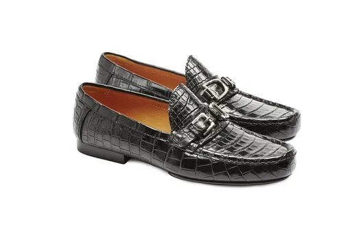 Дизайн элегантных мокасин разработан специально для Москвы. Узнаваемая модель Ralph Lauren выполнена из кожи аллигатора в черном и коричневом цветах и украшена фурнитурой в виде стремени.