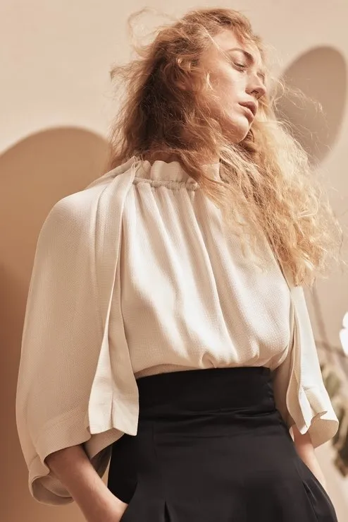 В коллекции использованы только натуральные материалы в спокойной цветовой гамме: органический переработанный хлопок, тенсел и модал, обработанные безопасным красителем . Mango гарантирует, что в коллекции не используется кожа и мех экзотических, диких или исчезающих видов животных.