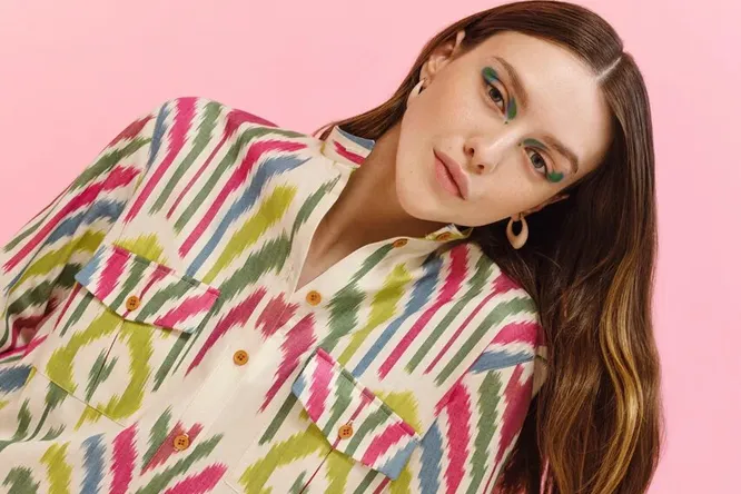 -во-вторых, восточная традиция нашла классное исполнение в casual-образах. Значит, что «икаты» идут не на традиционные кафтаны, как это делают обычно, а на платья блузки, мини-юбки, тренчи, пальто, бомберы и другую повседневную одежду;