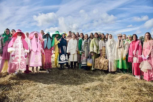 Что посеешь, то и пожнёшь — так гласит не только русская пословица, но и слоган юбилейной коллекции Akhmadullina, созданной в честь 20-летия бренда. Русские фольклорные мотивы, элементы традиционного костюма, сказочные сюжеты и народные легенды всегда лежали в основе ДНК бренда, стоит только вспомнить в объемные юбки, рукава, цветовую гамму и маски петухов и коз на ранних показах. Однако героиня коллекций — не девушка из народа, а настоящая русская сказочная царевна. В юбилейной коллекции Алена Ахмадулина продолжает тему экологичности, тренда на «побег» из суеты мегаполиса в тишину деревенской жизни и современной царевны, которая занялась сельским хозяйством в соответствии с духом времени.