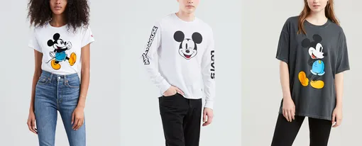 Кроме футболок и свитшотов с Микки Маусом, принты для которых были позаимствованы из архивов компании Disney в Анахайме (Калифорния), в коллекции также представлены эксклюзивная джинсовая куртка Levi’s Trucker и джинсы Levi’s 501 с изображениями культового мультперсонажа.