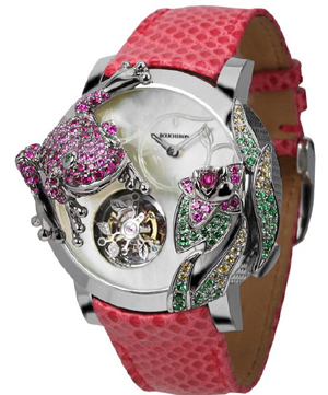 Сначала дизайнеры компании украсили мобильный телефон Vertu змеей, полностью сделанной из драгоценных камней. Теперь они решили и наручные женские часы дополнить маленькой лягушкой.