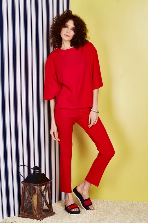 Комфортные монохромные костюмы с топами и свободными жакетами с накладными карманами, ультрасексуальные платья из прозрачного шифона с лаконичными контрастными комбинациями скроены комплиментарно женскому силуэту с целью подчеркнуть все достоинства фигуры, не жертвуя комфортом и превращая даже будничный повседневный выход в настоящее торжество стиля. Основными материалами новой коллекции стали органза, шелк, хлопок, шифон и креп, в которых дизайнеры воплотили наряды, сочетающие желанную женственность и необходимой дозой провокации – идеальный рецепт образа, который не оставит равнодушным ни одного мужчину.