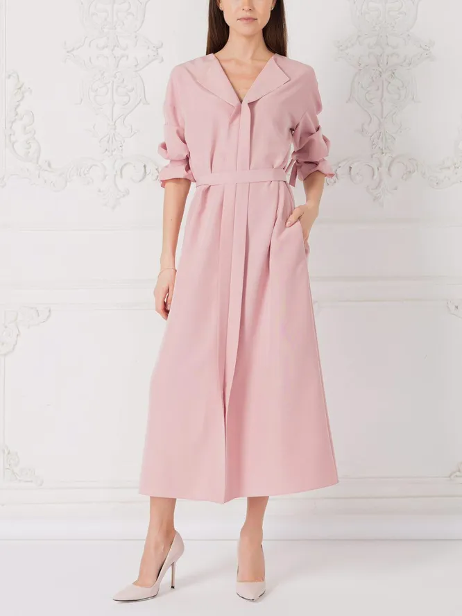 Плотная вискоза, из которой сшиты платья THE ROBE, отлично держит форму, подчеркивает достоинства фигуры и не требует сложного ухода. Благодаря завязкам на рукавах, элегантному вырезу и воротнику, делающему акцент на зоне декольте, образ не выглядит скучно и прекрасно дополнит осенний гардероб.