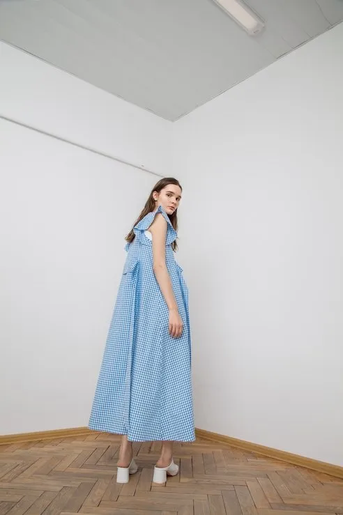 Бодрый спортивно-бытовой унисекс в духе российских «лихих» 90-х соседствует с платьями в клетку виши с оборками в наивном стиле. Не позабыт и свежий тренд на асимметрию и оригинальный крой.