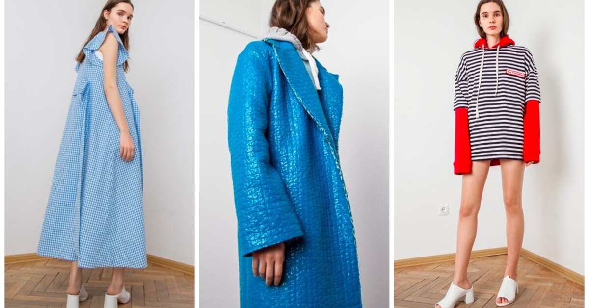 Бодрый спортивно-бытовой унисекс в духе российских «лихих» 90-х соседствует с платьями в клетку виши с оборками в наивном стиле. Не позабыт и свежий тренд на асимметрию и оригинальный крой.