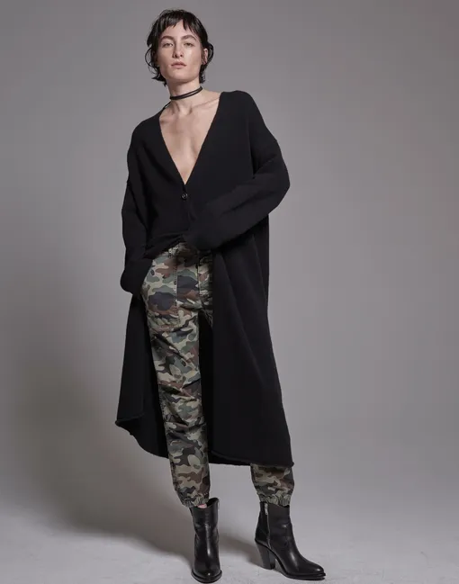 Нили Лотан всегда придерживалась черно-серой палитры, обильно использовала деним и другие практичные ткани. В этом смысле новая пре-коллекция стала логичным продолжением линии марки, но ко всему упомянутому добавился основной лейтмотив — камуфляж.