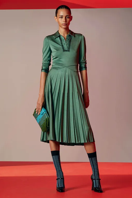 Круизная коллекция состоит из всесезонной базы: платья, юбки, джинсы, костюмы, — однако больше тяготеет к холодному сезону за счет обилия верхней одежды.