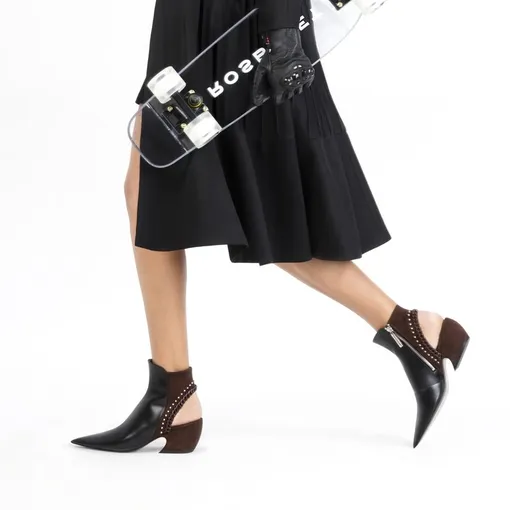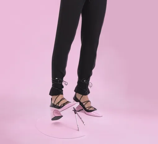 Архитектурные линии каблуков и блестящая поверхность лаковой кожи уравновешиваются нежными оттенками розового, изящной шнуровкой и фигурными деталями — бренд стремится объединить брутальность и женственность и весьма неплохо справляется с этой задачей.