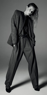 На первых снимках бразильская модель предстает с минимальным макияжем, подчеркивающим ее природную красоту, и позирует в одежде сдержанных теплых тонов: широкие брюки и пиджак мужского кроя, oversize-пальто и свитер с этническим принтом на груди. Кадры в целом получились очень атмосферными, передающими осеннее настроение. Запасемся терпением и посмотрим, насколько коллекция будет соответствовать заявленному настроению.