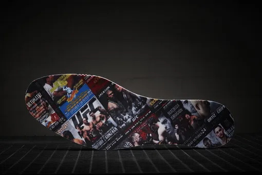 Кроссовки изготовлены из премиальной кожи, используемой в производстве перчаток, в которых выступают бойцы. Также всех поклонников единоборств ждет еще один сюрприз — съемная стелька с коллажированным принтом из плакатов самых известных боев за историю UFC. Всего в мире было выпущено 1993 пары в честь года основания UFC.