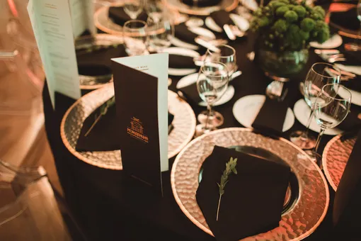 В этой вечер гостей ожидало авторское меню со сменой 5 блюд, в основу которого вошли: ризотто бьянка с черным тосканским трюфелем, филе морского волка, припущенное на пару с помидорами, и запечённая в пряных травах телятина с картофельным пюре.