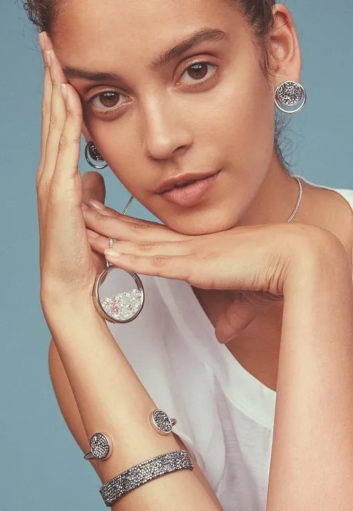 Графичные ожерелья с крупными звездами, круглые подвески, наполненные россыпью кристаллов, подобно «снежным шарам», цепочки, напоминающие елочные гирлянды, мерцающие и переливающиеся браслеты — коллекция вне всякого сомнения добавит блеска в твои праздничные аутфиты, бунтарскую нотку в популярные луки, навеянные прошлыми десятилетиями, и элегантно дополнит повседневные образы.