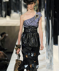 Дизайнер предпочел не усложнять силуэты. Почти все его модели — классические приталенные платья или юбки с широким поясом на талии. Юбки также не грешат разнообразием — большей частью это «карандаш» до колена или середины икры. Акцент сделан на материал, отделку и стильные аксессуары. В ход пошли сверкающие ткани с металлической нитью и аппликации в форме цветов, бабочек и птиц. Джейкобс предлагает носить самые разные топы — от актуального ассиметричного с одним открытым плечом до вариаций на тему китайских одежд с узким разрезом у ворота. Стильные аксессуары — массивные цветные браслеты и броши в виде цветов и бабочек — грозят превратиться в самые горячие хиты. Не обойдены вниманием сумочки с леопардовым принтом и кокетливые соломенные шляпки-канотье.