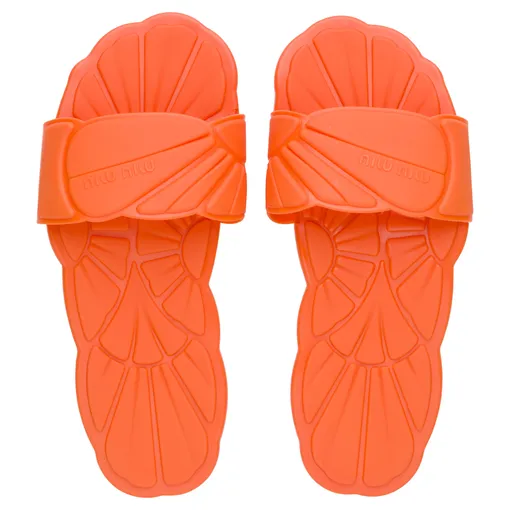 Яркие каучуковые шлепанцы Miu Miu, декорированные контурным рельефом и логотипом бренда, не так просты, как тебе кажется. Почему они понадобятся нам этим летом?