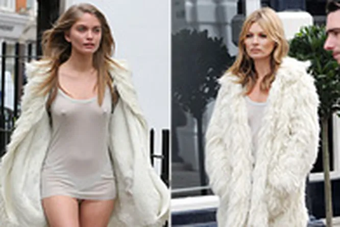 В момент, когда Кейт нужно было предстать перед камерой в довольно откровенном виде, она не на шутку смущалась и всячески укутывалась в шубу. А в это время копия Мосс свободно расхаживала по улице в полупрозрачной майке и ботфортах.