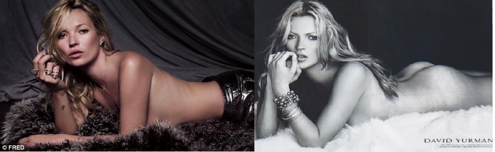 Ювелир Дэвид Юрман обвиняет в плагиате своих коллег из бренда Fred. Юрман назвал эту кампанию похожей на ту, в которой Кейт участвовала год назад для самого Юрмана. Действительно, свежие снимки Мосс для французского Fred, вместе с которым она также создает собственную линейку, почти не отличить от фотографий самой Мосс годичной давности, сделанных для Дэвида Юрмана.
