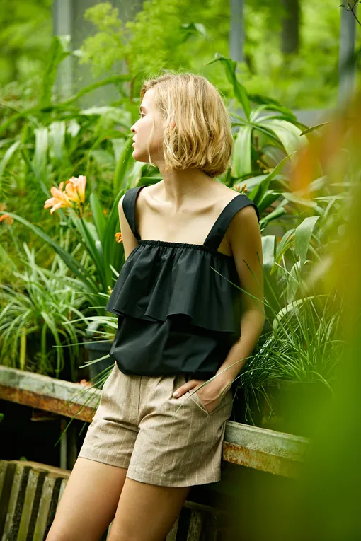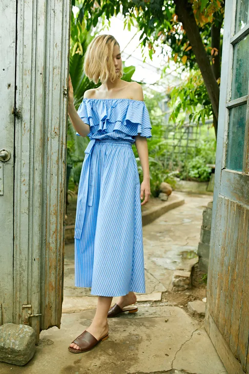 Стоимость платьев — от 6700 до 9700 рублей, топов — от 2800 до 4900 рублей, брюк — от 5700 до 6700 рублей.