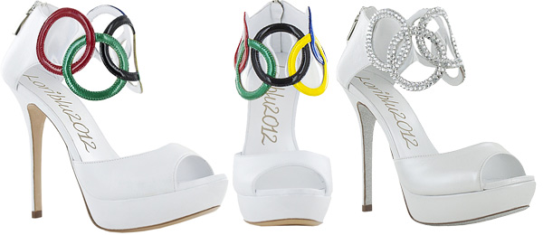 Коллекция состоит всего из трех моделей. Самая яркая среди них — это белые босоножки, украшенные вечным символом Олимпийских игр, пятью разноцветными кольцами, обвивающими щиколотку. Эта модель представлена и в более изысканном варианте: олимпийские кольца декорированы блестящими кристаллами Swarovski.